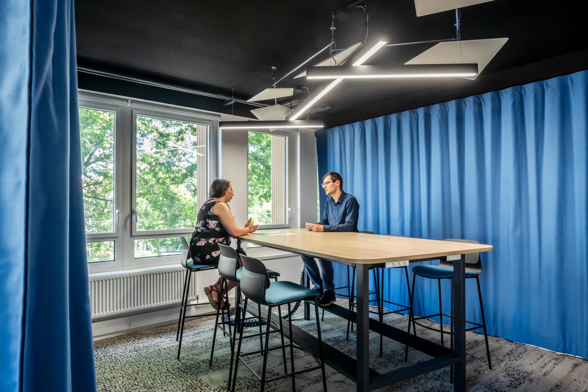 Une attention particulière a été portée à la diversité des postures de travail et à la qualité des espaces d’échange.