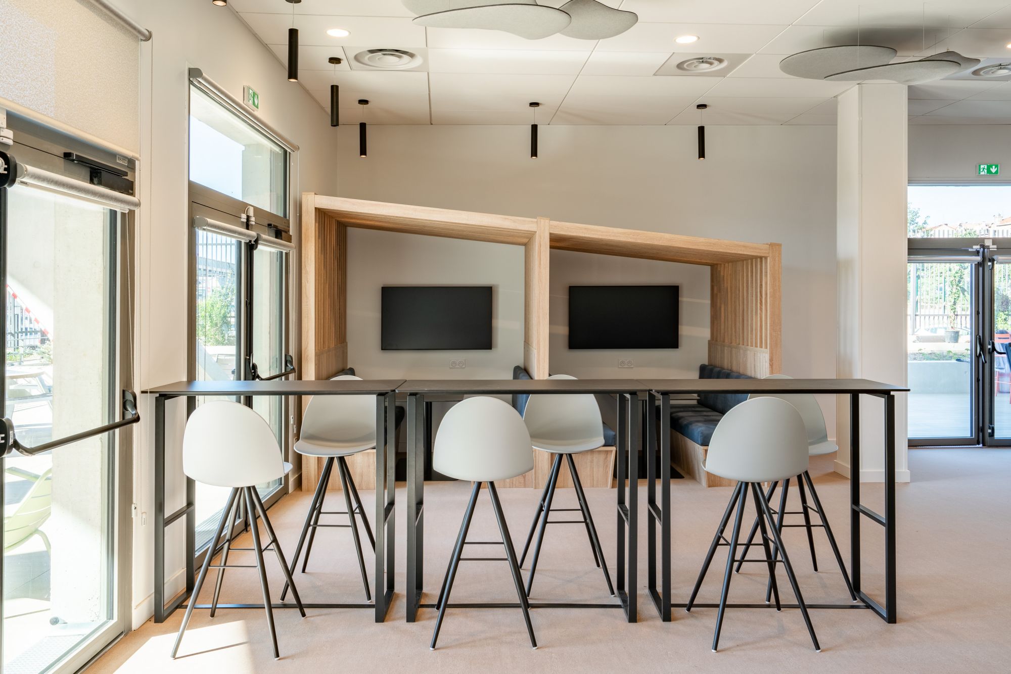 - Des espaces de vie et de communication (hall, restauration d'entreprise, showroom, salle de détente, place du village)